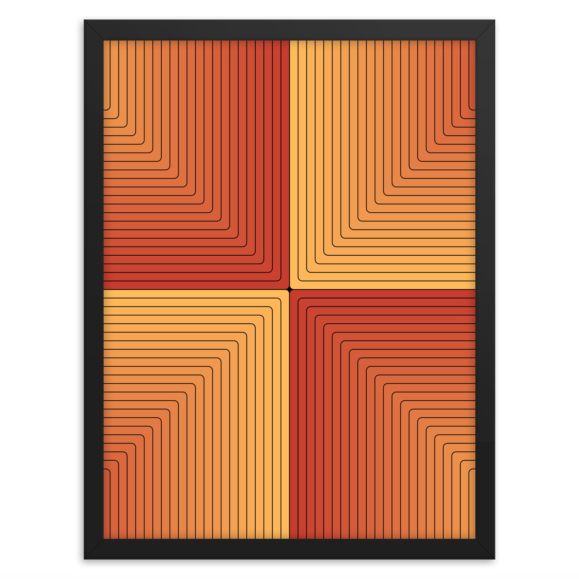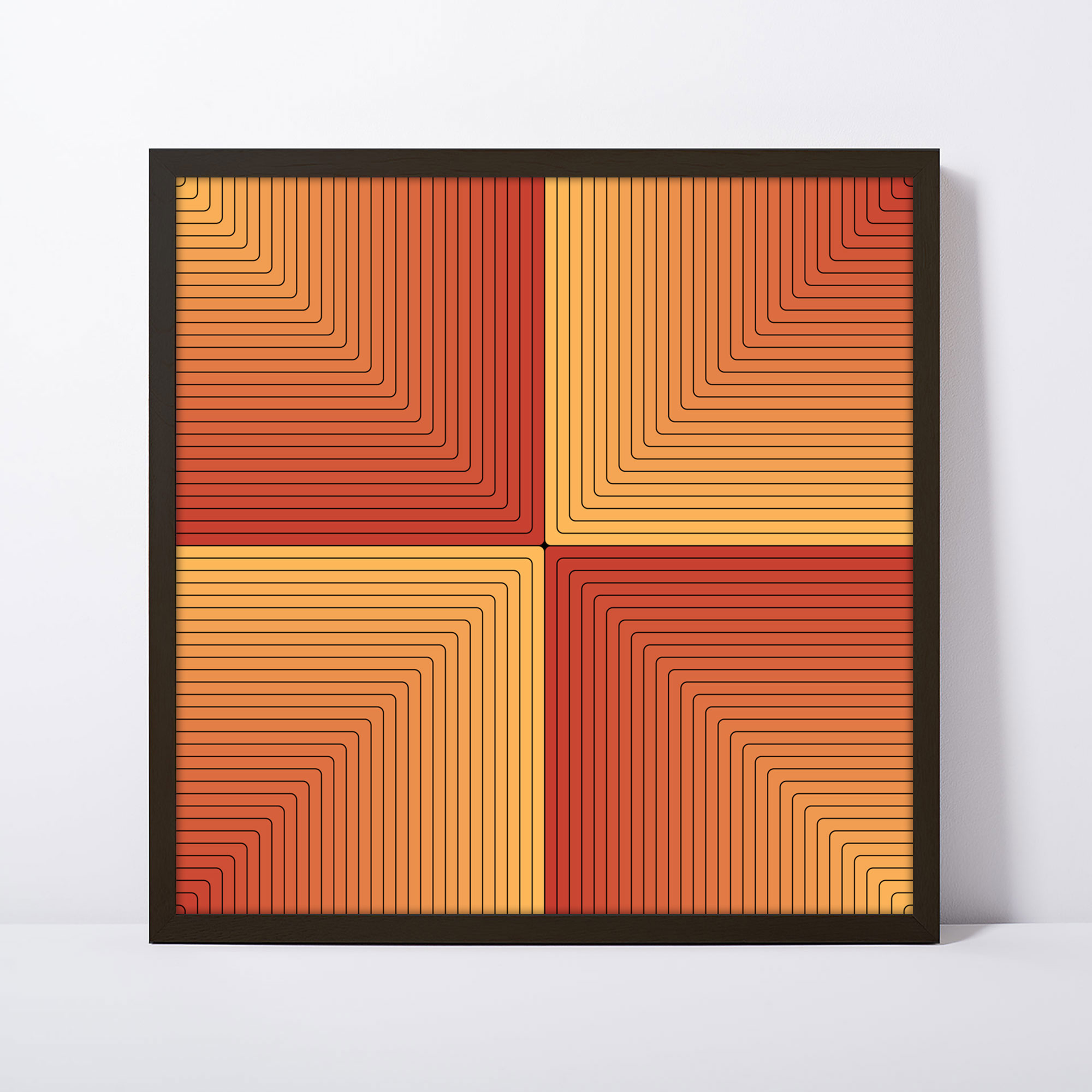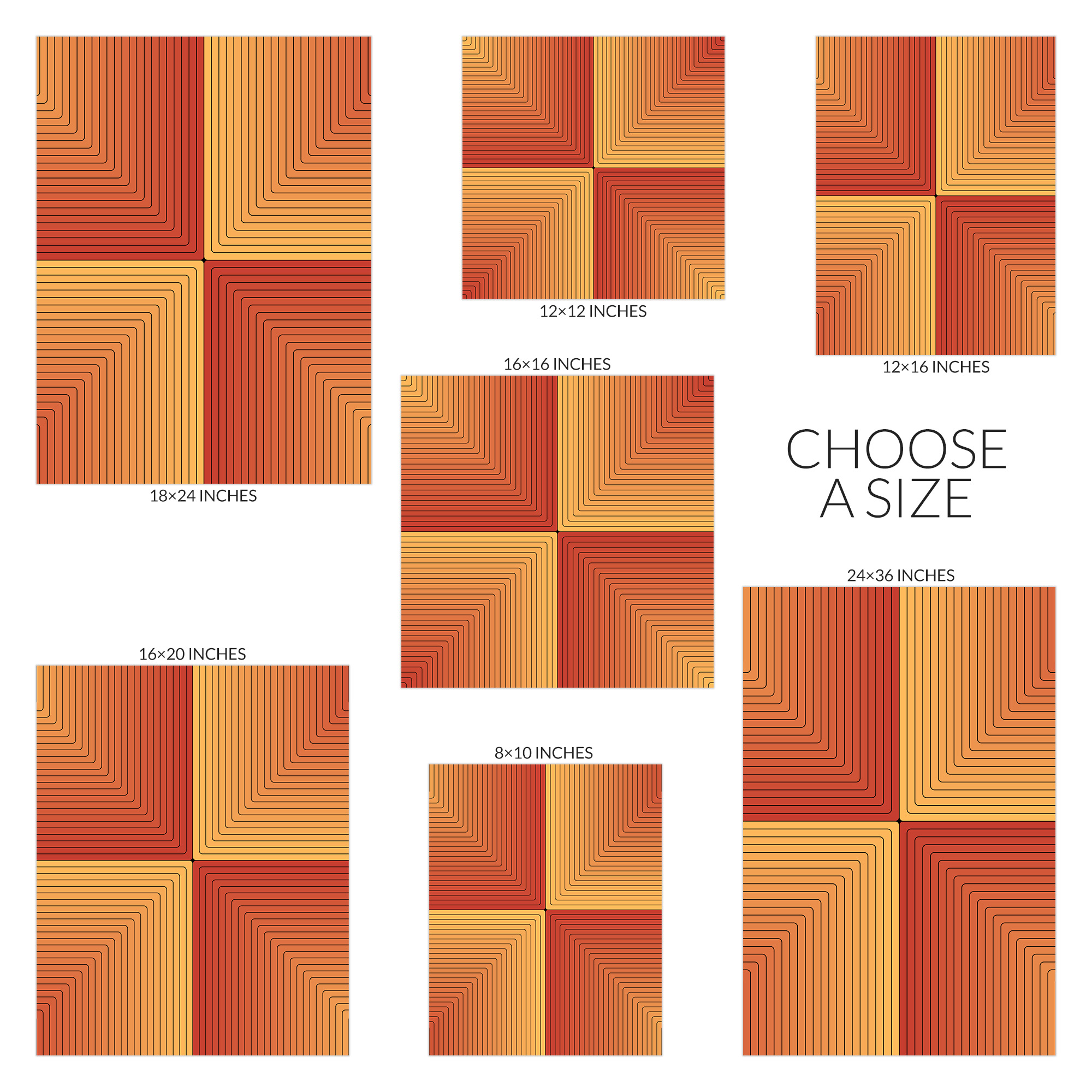 Featuring layered, concentric lines in fiery shades of orange and gold, Scorcher is a design that captures the essence of a blazing summer sun. This bold modern art print adds a vibrant, dynamic, and intense focal point to any space.
