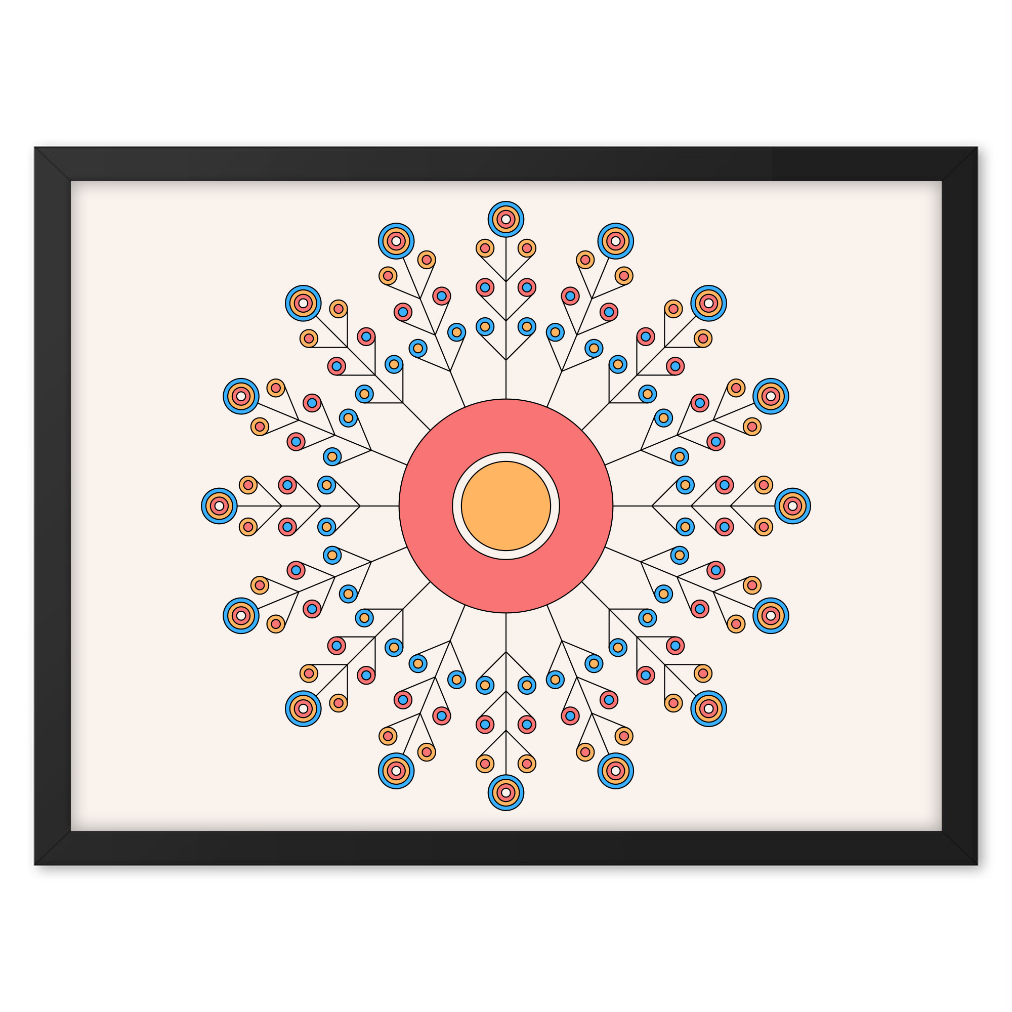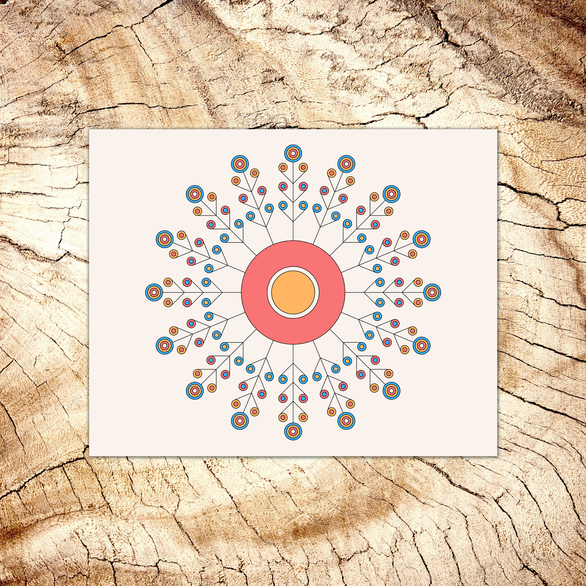 In Tribes, tiny clans of red, gold, and blue gather around the Great Sun at the center. They’re storytellers, dancers, and dreamers who send their branches out into the world as pathways of connection, weaving friendships throughout the mandala village.